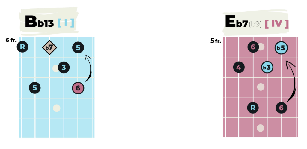 Studying the actual relationships of the harmony of the underlying key is a pathway to not only know the ingredients, e.g. 12 bar form, IV ‘quick change’ in bar 2 – that’s a first step – but how they relate and why specific choices make a chord progression sound more bluesy, or jazzy.